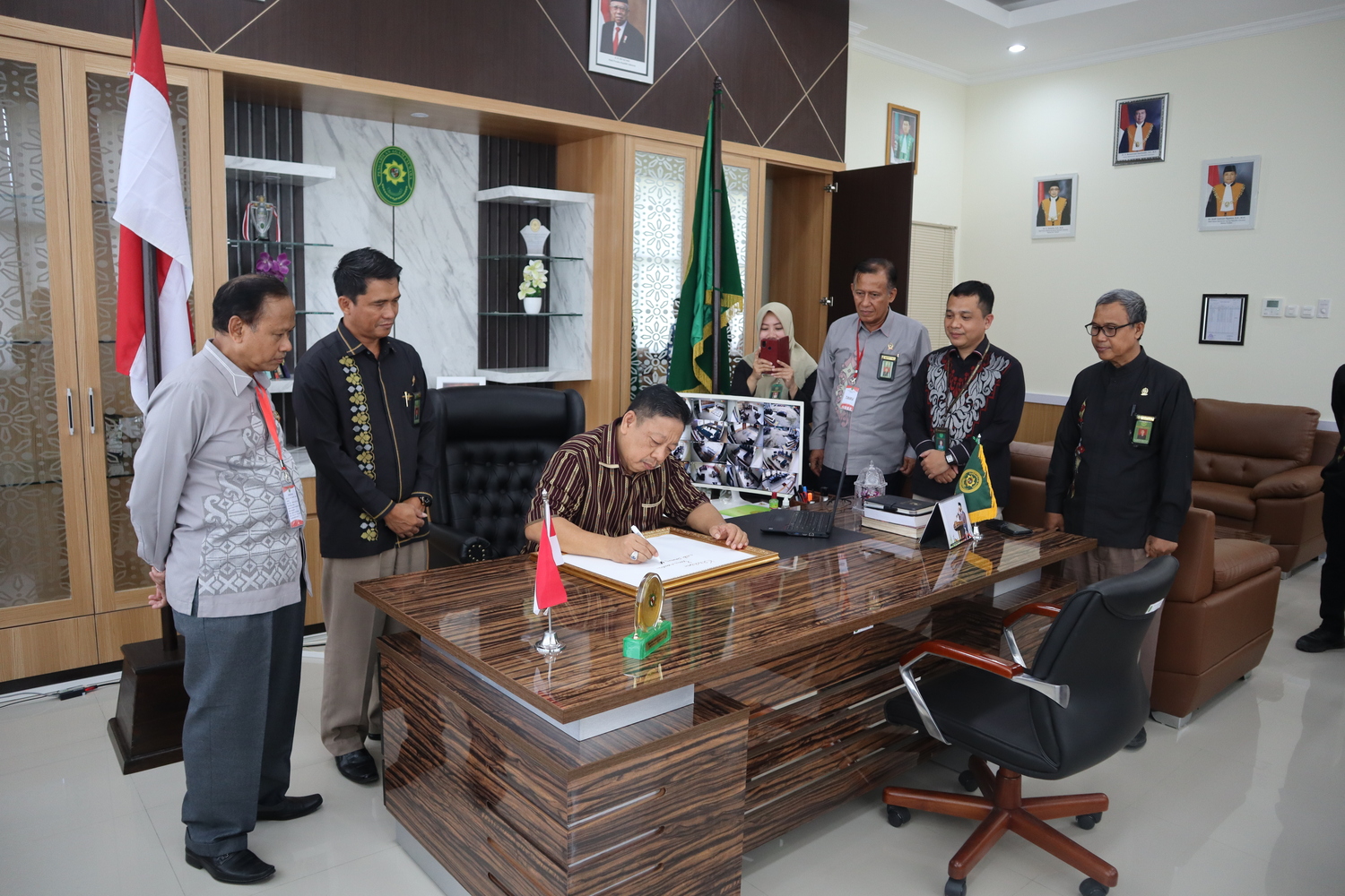 Selesai memasuki ruangan, Direktur Jenderal Badan Peradilan Agama Mahkamah Agung RI (Dr. Drs. H. Aco Nur, S.H., M.H) menyempatkan bermain tenis meja bersama ketua PA Suwawa. Antusias beliau terlihat saat bermain tenis meja bersama ketua PA Suwawa. Setelah bermain tenis meja, beliau memberikan kata-kata semangat untuk PA Suwawa yang beliau tuliskan dalam sebuah kertas. Kunjungan diakhiri dengan foto bersama seluruh pegawai Pengadilan Agama Suwawa.