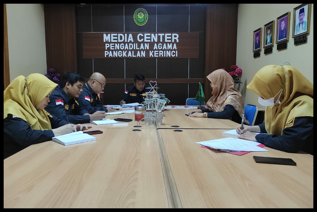 Bertempat di Ruang Media Center Pengadilan Agama Pangkalan Kerinci dilaksanakan Rapat Rutin Tim Badan Pertimbangan Jabatan dan Kepangkatan yang dikenal sebagai Tim Baperjakat . Rapat tersebut diikuti oleh Hakim, Sekretaris, dan Plh . Panitera serta dipimpin langsung oleh Wakil Ketua yang juga sekaligus sebagai Ketua Tim Baperjakat PA Pangkalan Kerinci.