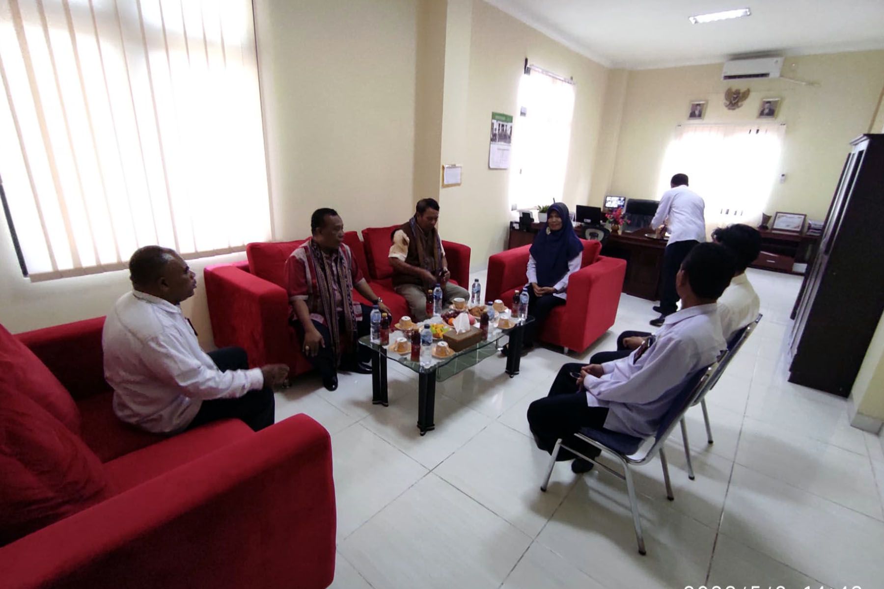 Senin, 08 Mei 2023, Pengadilan Agama Larantuka memperoleh kehormatan untuk menerima kunjungan dari Tim Pembinaan dan Pengawasan Daerah dari Pengadilan Tinggi Agama Kupang, sesuai dengan Surat Tugas Nomor : W23-A/850/Kp.01/5/2023 Tanggal 05 Mei 2023 Bapak Drs. Ilham Abdullah, S.H., M.Kn selaku Ketua Pengadilan Tinggi Agama Kupang dan Bapak Heri Eka Siswanta, S.H., M.H selaku Panitera Pengadilan Tinggi Agama Kupang disambut dengan hangat yang ditandai dengan pengalungan kain tenun adat oleh Ibu Nikmawati, S.HI., M.H selaku Ketua Pengadilan Agama Larantuka dan didampingi oleh para hakim bapak sekretaris.