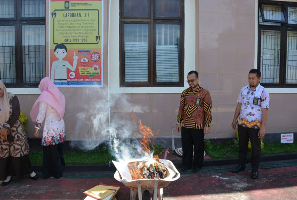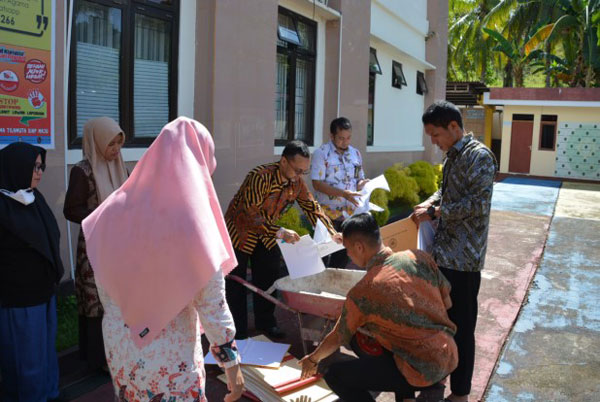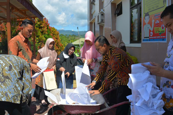 Seratus lebih buku register perkara dan buku keuangan perkara ini dimusnahkan dengan memperhatikan Peraturan Menteri Keuangan Republik Indonesia Nomor : 83/PMK.06/2016 tentang Tata Cara Pelaksanaan Pemusnahan dan Penghapusan Barang Milik Negara. Pelaksanaan pemusnahan dan penghapusan ini telah dicatat dalam Berita Acara Pemusnahan Buku Register dan Buku Jurnal Perkara oleh Agnes Zakaria, A.Md. Kepala Sub Bagian Umum dan Keuangan (Anggota Tim) Yang ditandatangani oleh Semua Tim Panitia dan saksi-saksi. (AAB)